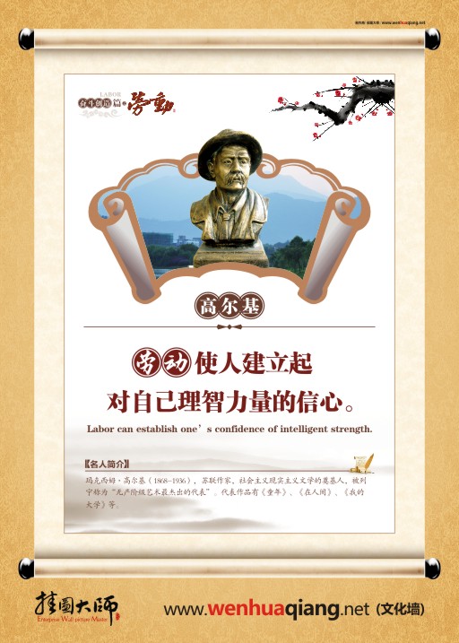 勞動(dòng)給人們創(chuàng)造財(cái)富,所有成功都需要付出辛勤的勞動(dòng),并且跟我們的生活密切相關(guān),每個(gè)人都要對(duì)國(guó)家社會(huì)做出勞動(dòng)貢獻(xiàn),對(duì)于國(guó)家未來(lái)的知識(shí)分子,理應(yīng)從小接受勞動(dòng)教育,學(xué)校除傳授書面知識(shí)外,更應(yīng)該培養(yǎng)學(xué)子們自身的勞動(dòng)能力,從力所能及的小事做起,體驗(yàn)勞動(dòng)帶來(lái)的健康和樂(lè)趣,為了增強(qiáng)更多勞動(dòng)文化,【文化墻】推出以名人名言為典范的系列掛圖,內(nèi)容清新明了,以書畫風(fēng)格展現(xiàn),充滿了文學(xué)氣質(zhì)。擺放于教室/勞動(dòng)教室、走廊等公眾場(chǎng)所更能大力的宣傳勞動(dòng)的意義,用辛勤勞動(dòng)的精神在學(xué)習(xí)這片土地上積極耕耘,從而獲得成功。