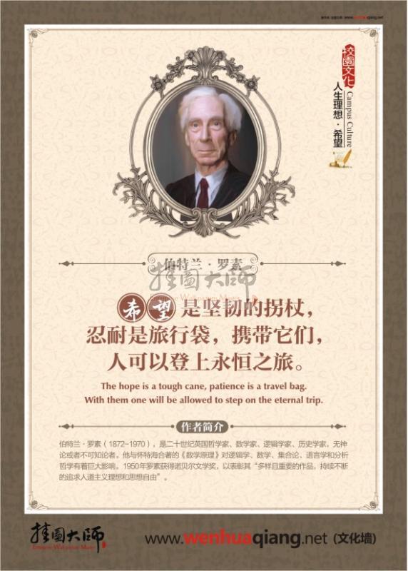 希望是堅(jiān)韌的拐杖,忍耐是旅行袋,攜帶它們,人可以登上永恒之旅。